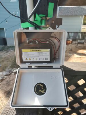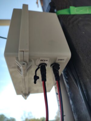 Our feeder lighy slowly fades on to 90% brightness over 90 seconds and stays bright for 2 full minutes. Bright time is increased by 30 if motion is detected during that 2 minute period. If no motion detected after 2 minutes, the light will slowly fade to 2% brightness over 45 seconds. It will stay dim until motion is detected again which conserves battery power. A standard 7 Ah feeder battery will last several nights without recharging, depending on how much activity is encountered each night. There are no switches to turn on or adjust. Simply connect your feeder battery, then plug in the solar panel and the light to the battery box. The dark sensor on the light will turn the system on at dusk. Our light can be purchased with or without the mounting and solar kit. The kit allows the light system to be mounted just about anywhere very easily and securely utilizing a quality ratchet strap which is included.