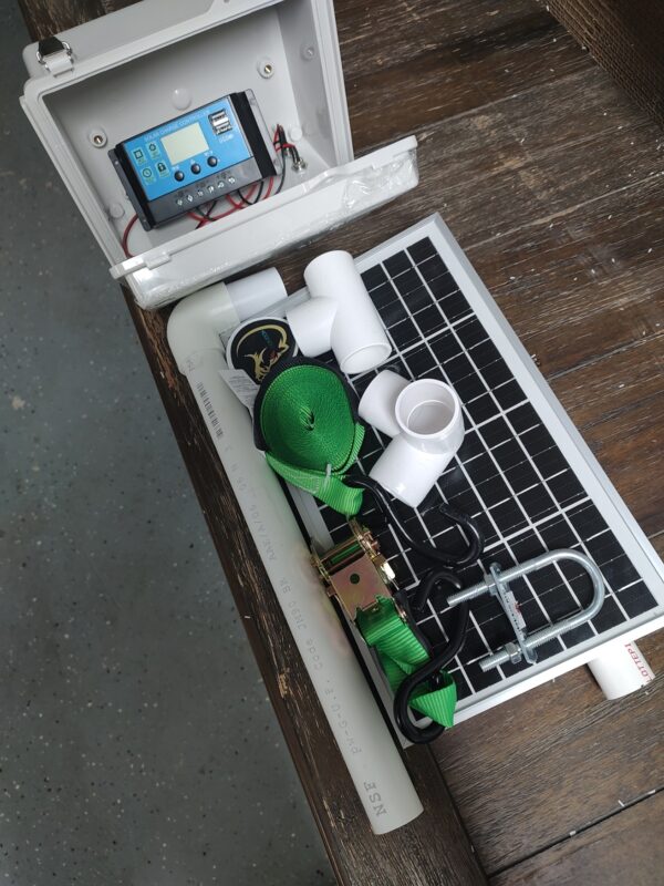 Our mounting kit system for mounting your Hogfader lights. Kit comes with all PVC pcs, ratchet strap, solar panel and instructions.